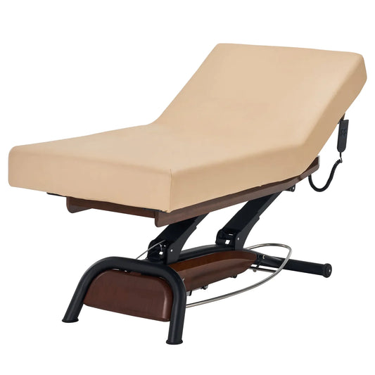 Spabodega Atlas Liftback Electric Lift Spa Salon Stationary Bed - Cream Top with Walnut/Oak Base