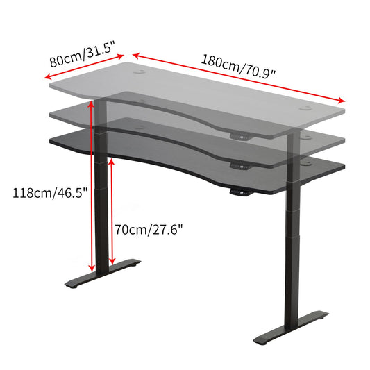 Hi5 Ez Electric Height Adjustable Standing Desk with ergonomic contoured Tabletop (71"x 31.5" / 180 x 80cm) and dual motor lift system for Home Office Workstation